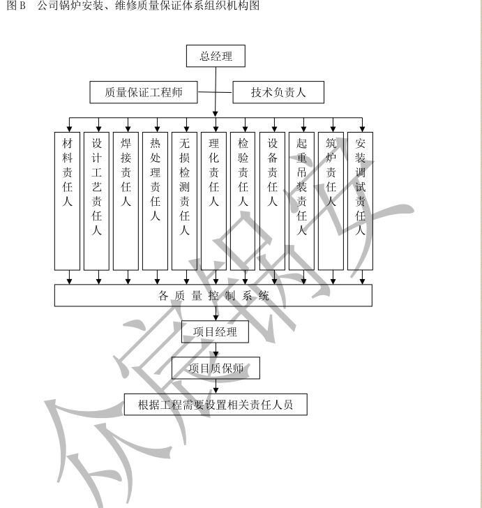 負(fù)責(zé)建立與鍋爐安裝、維修和壓力管道安裝質(zhì)量******體系相適應(yīng)的組織機(jī)構(gòu)、任免質(zhì)量******體系的責(zé)任人員:并配備必要的資源:
